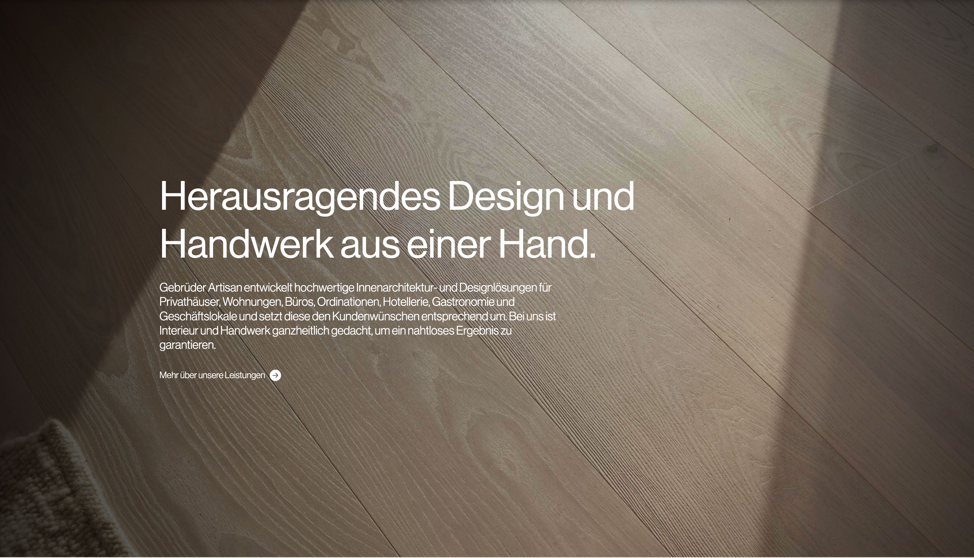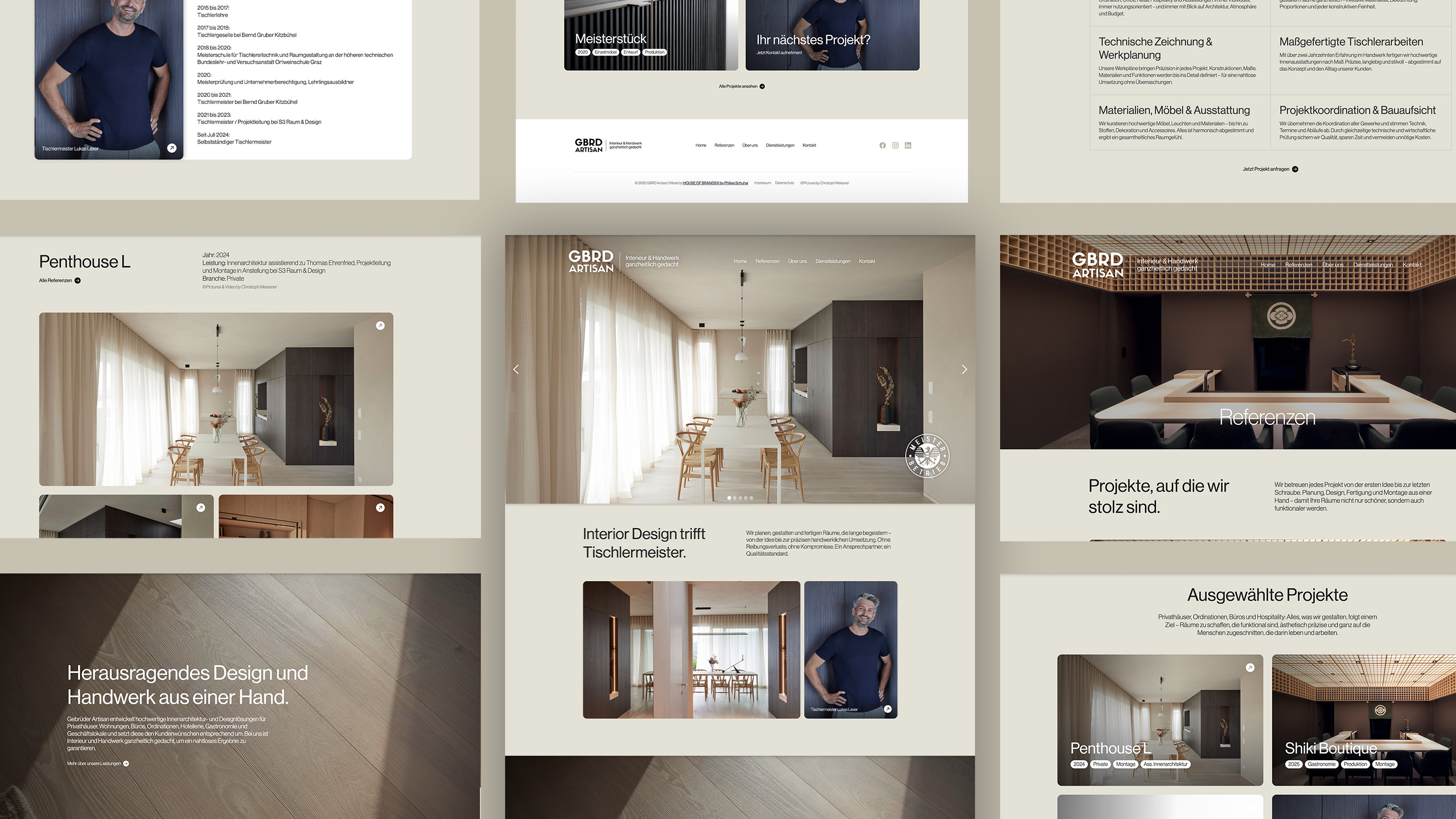 Die Grundlagen für Gebrüder Artisan waren bereits durch einen Businessplan definiert. Ziel des Projekts war es, diese Vision erstmals digital sichtbar zu machen. Im Mittelpunkt stand die Entwicklung einer minimalistischen Website, die die hohe Qualität der Maßarbeit von Lukas Lexer widerspiegelt. Großzügige Referenzen, eine reduzierte Gestaltung und eine klare Struktur sorgen dafür, dass die Arbeiten für sich sprechen. Ergänzend entstand eine konsistente visuelle Basis, die auch auf Instagram und Visitenkarten Anwendung findet und den Markenauftritt von Gebrüder Artisan abrundet.